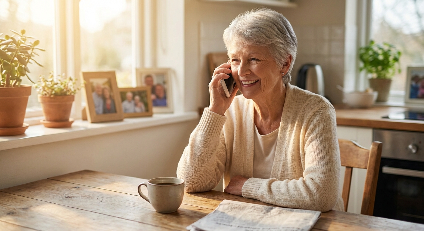 Every morning, a friendly voice calls your mom. They talk about her garden, her grandkids, her life. And if something feels wrong — you're the first to know.